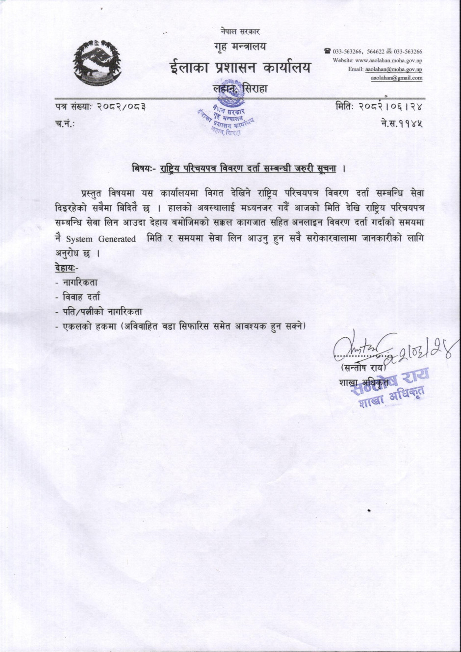 ईलाका प्रशासन कार्यालय, लहान, सिराहाबाट जारी सूचना ।