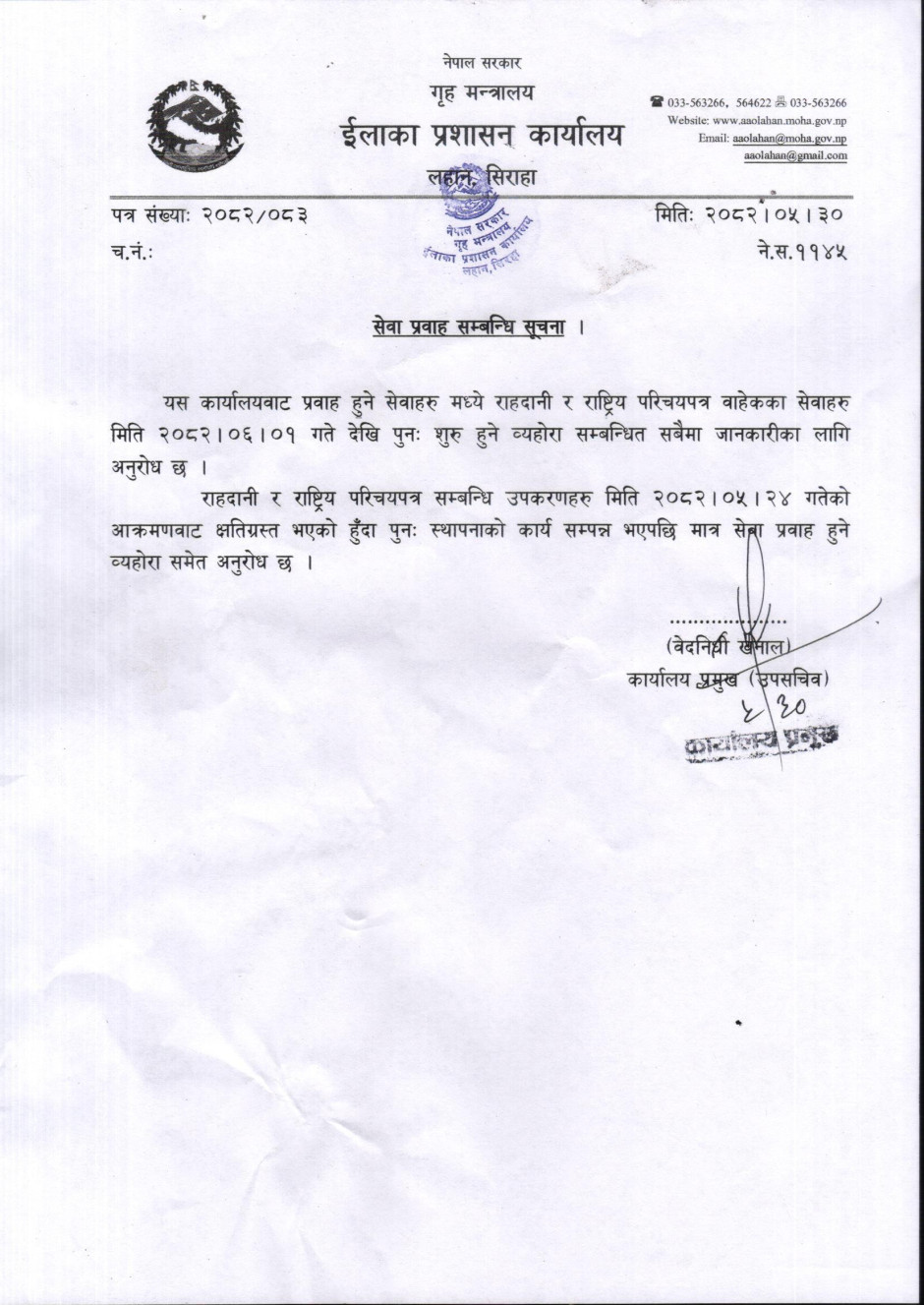 © सर्वाधिकार सुरक्षित इलाका प्रशासन कार्यालय, लहान, सिराहा